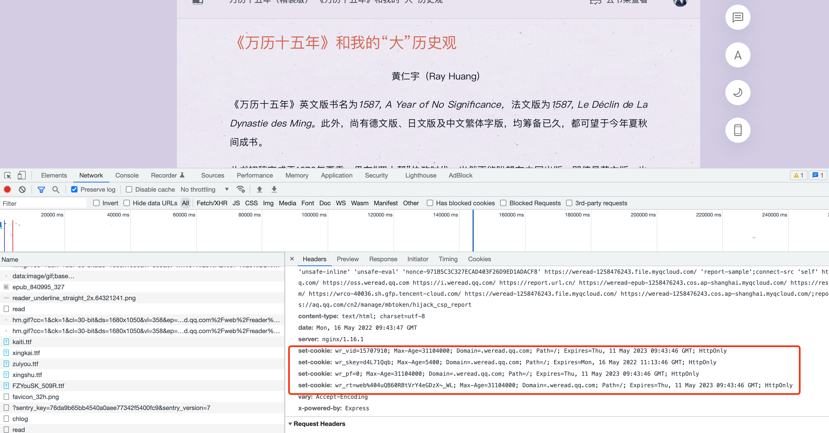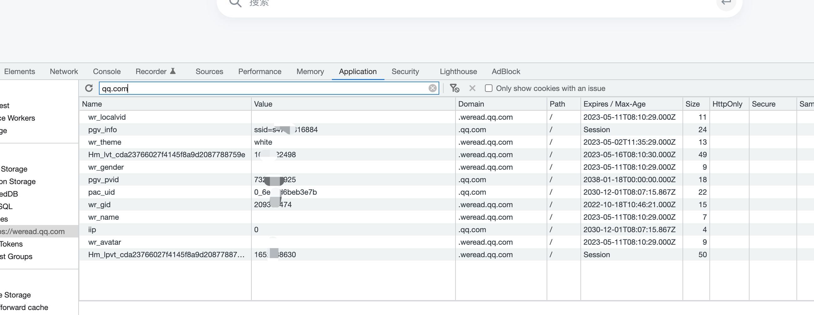 在进入到weread.qq.com的时候,就已经存在Cookie信息了,只不过一部分的Cookie信息是空的,