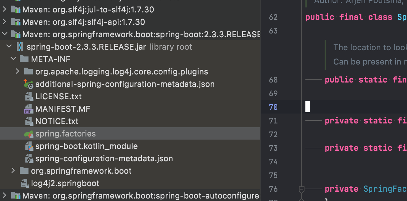 | public static final String FACTORIES_RESOURCE_LOCATION = "META-INF/spring.factories";